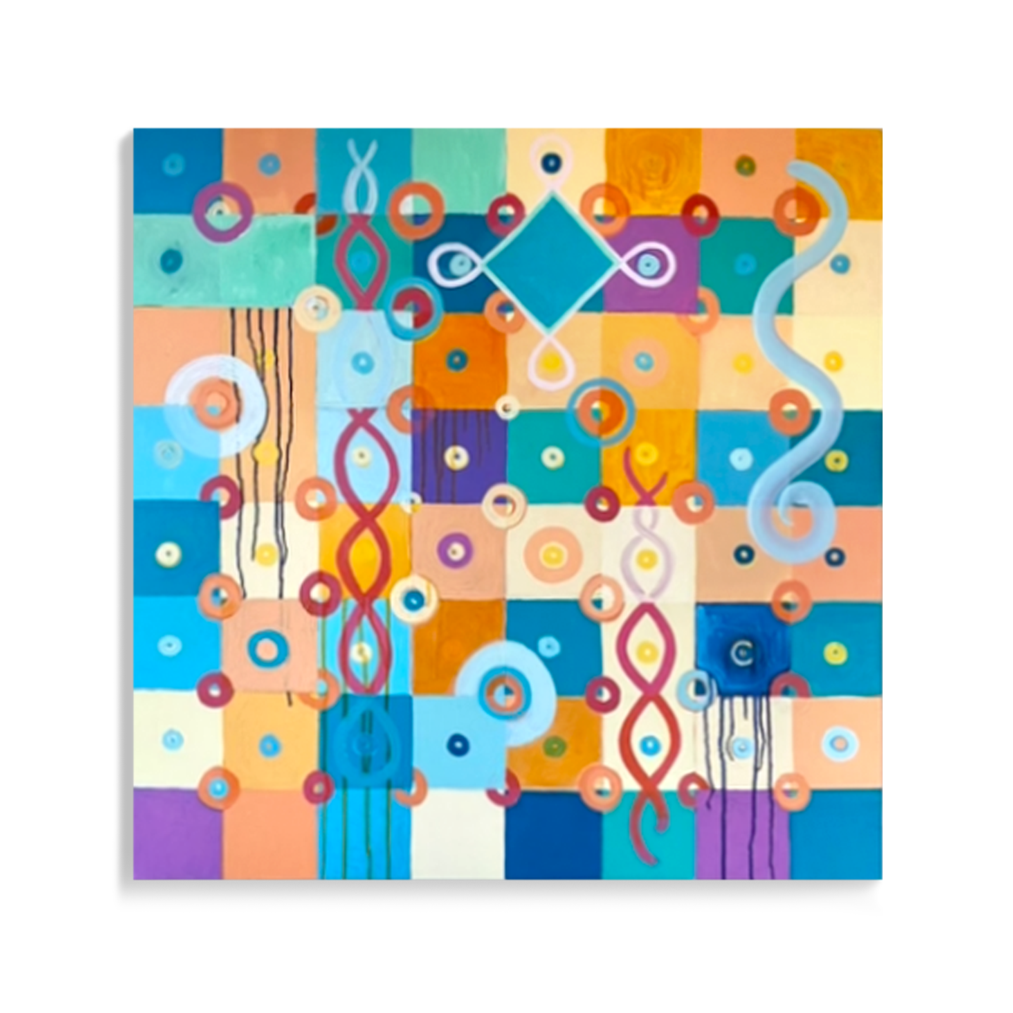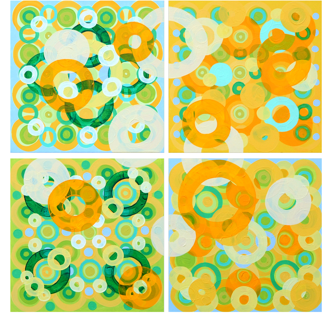 Four canvases of 2’ x 2’, creating a 4’ x 4’ piece (1 1/2” profile)