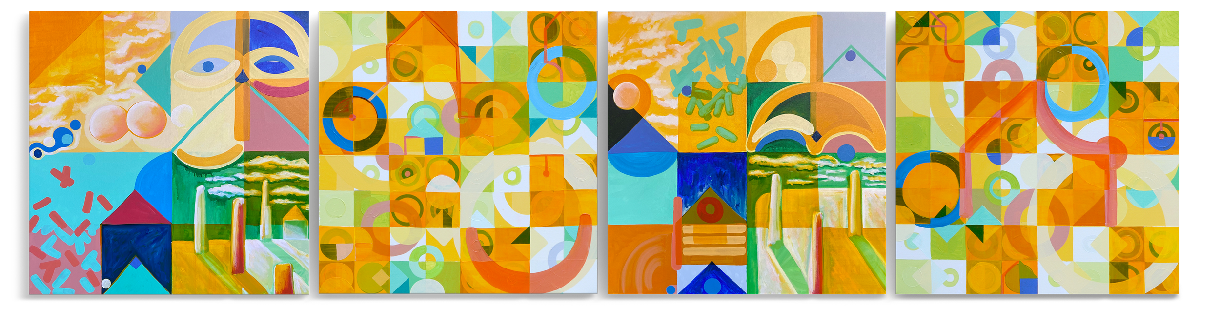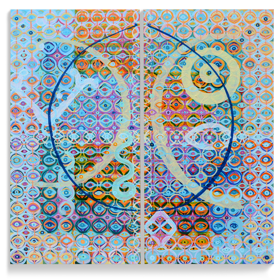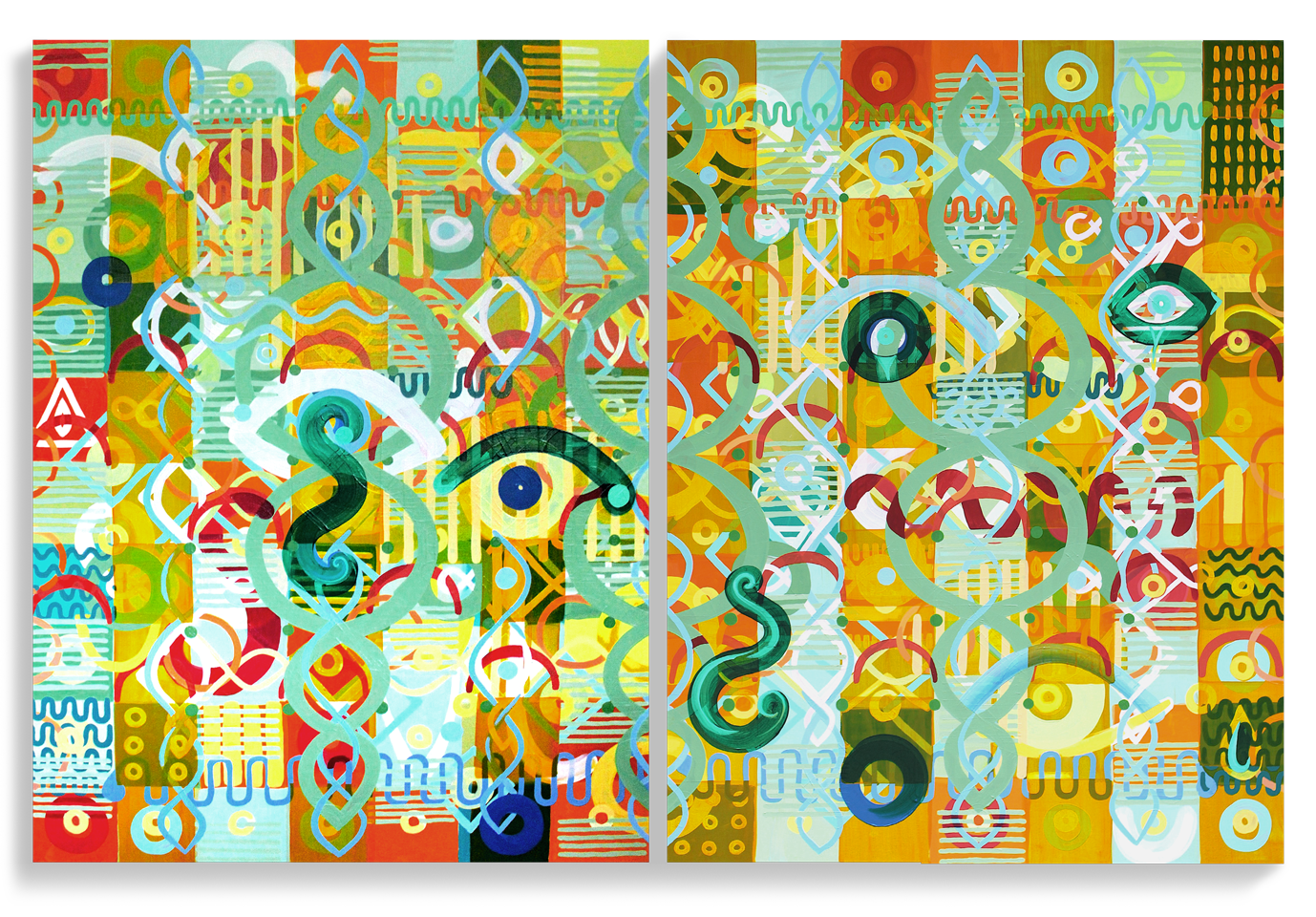“…they plummet the eye of the beholder with geometries of color that kaleidoscope the seen with the unseen.”